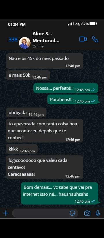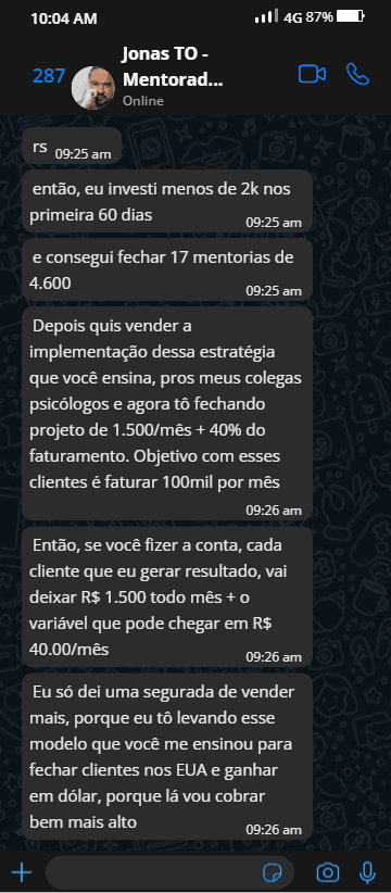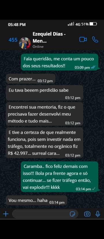 “Hoje eu consigo fazer 1k por dia, vendo regressão e todos os dias consigo fechar uma. Sua mentoria foi essencial pra isso!”